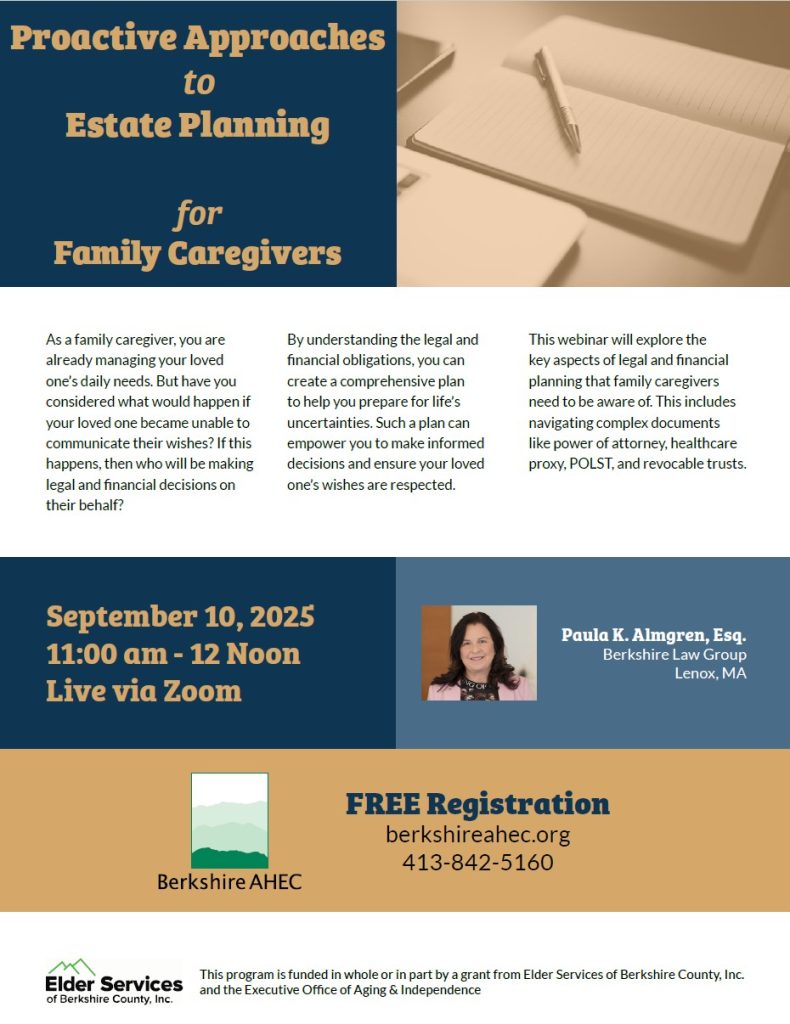 This webinar will explore the key aspects of legal and financial planning that family caregivers need to be aware of.