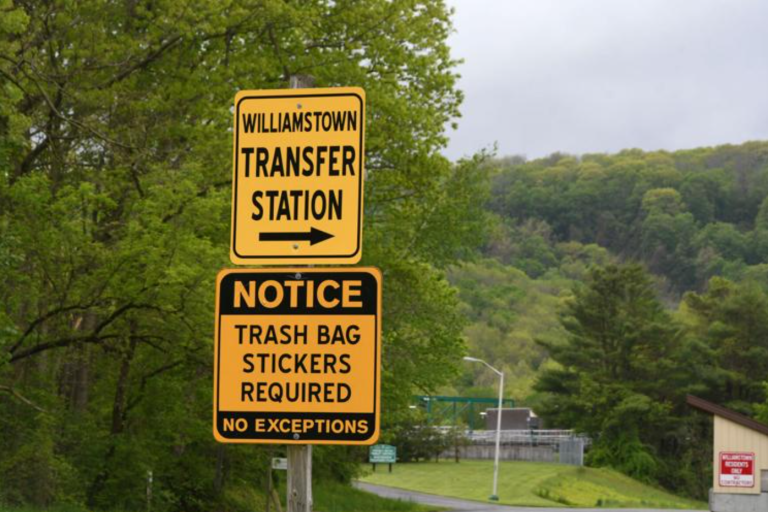 You can drop off trash, recycling, and compost to Williamstown Transfer Station after purchasing a Permit Sticker. Trash disposal also requires Trash Bag Tags. Please learn more at our Trash and Recycling page.